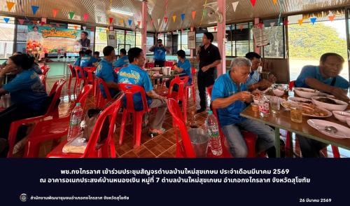 ⚫️ สำนักงานพัฒนาชุมชนอำเภอกงไกรลาศ โดย นางวิภาดา ไกรกิจราษฎร์ พัฒนาการอำเภอ มอบหมายให้ นายรุ่งโรจน์ ดวงงาม นักวิชาการพัฒนาชุมชนปฏิบัติการ เข้าร่วมประชุมชุดปฏิบัติการประจำตำบลบ้านใหม่สุขเกษม ประจำเดือนมีนาคม 2569 เพื่อชี้แจงข้อราชการ